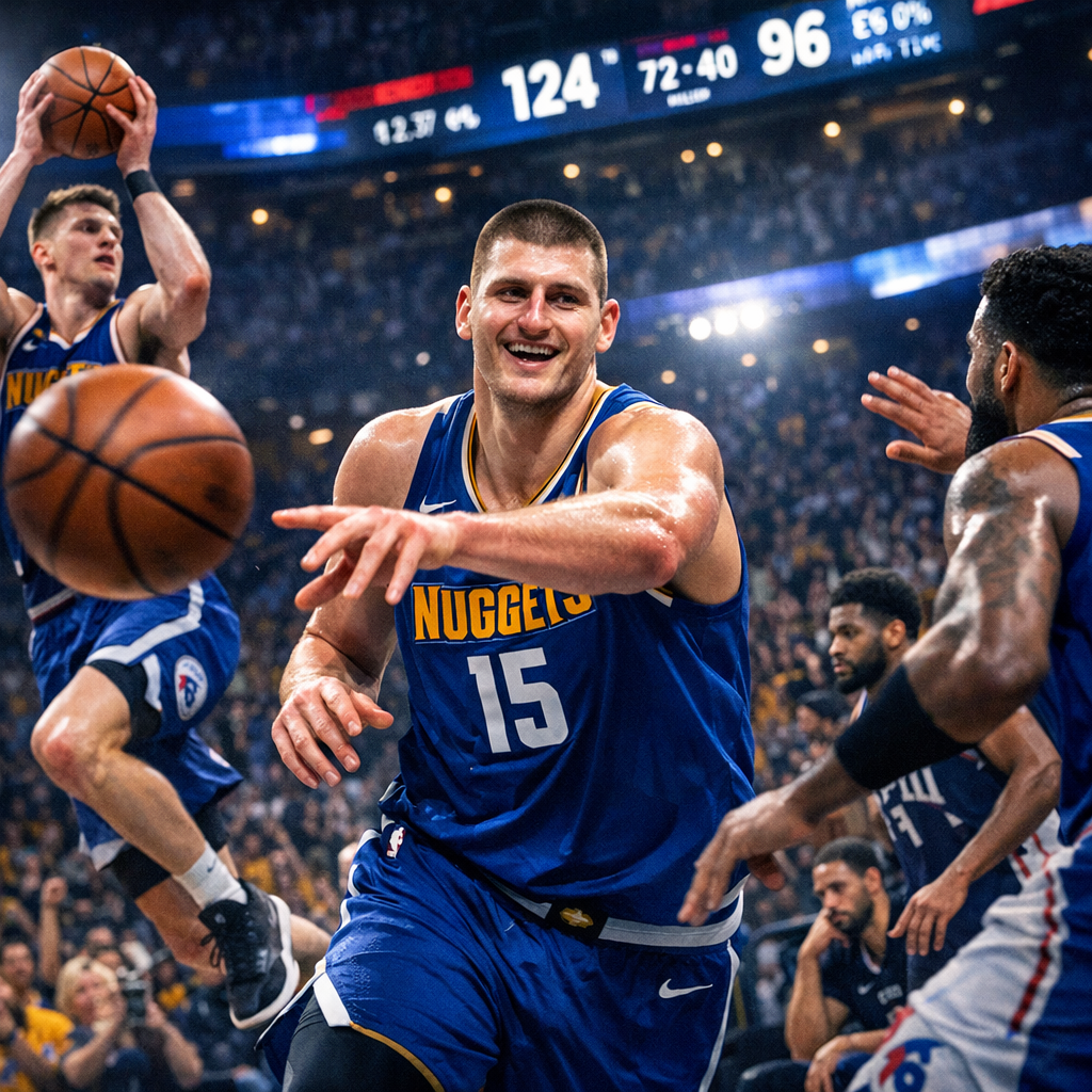 Denver Nagetsi su u noćnoj NBA utakmici na svom parketu lako savladali Filadelfiju 124:96, sa Nikolom Jokićem u glavnoj ulozi iako sa skromnijim poenima. Ova pobeda jača poziciju prvaka na Zapadu u borbi za plej-of.